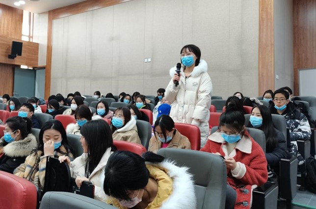 在提问环节,针对同学们在研究生起步阶段的困惑,蒋艳师姐建议:研一要多读文献,多思考,多学习积淀,切记闷头扎进老师的课题中盲目做事,而是应该结合老师的课题目的和内容,思考总结今后学习的目的和方向,并将成果内化为自己的收获。