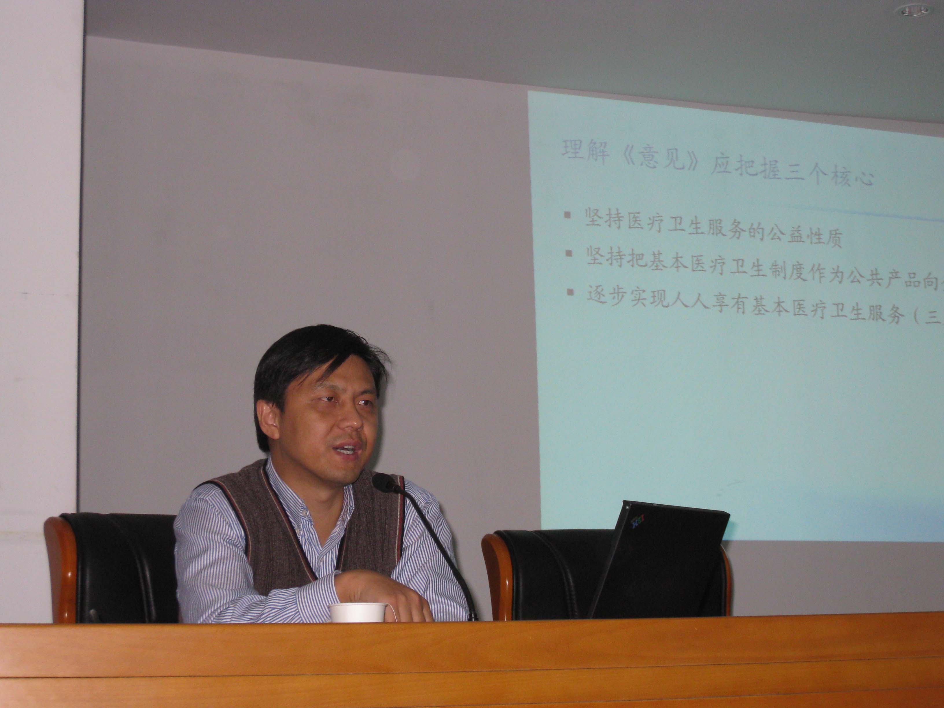 龚向光处长首先从09年医药卫生体制改革的几大特点入手,联系国外医疗卫生体制改革中的问题及特点,为同学们解读了新医改。在讲座中,龚处长就09年新医改的基本框架做了系统介绍,并对加强公共卫生体系建设、基本药物制度、基层医疗卫生服务体系、推进公立医院改革等相关医改政策作了详细的讲解,使得同学们对新医改有了更加深入的认识与了解,有助于同学们今后进一步的学习与实践。龚处长还就同学们所提出的问题,结合实际以及自己的经历、经验,为同学们解读了求职就业等方面的困惑。龚处长指出,公共卫生事业管理是一门十分重要并有利于社会、有利于人民的专业,并寄希望于同学们,希望大家可以在这个领域中取得一定的成就,从而为我国卫生事业的发展做出更多的贡献,这不仅使得同学们对自己更加充满信心,而且为同学们未来的发展指明了方向。