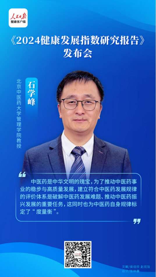 石学峰教授长期从事中医药管理与政策研究工作,其中,构建中医药事业综合发展指数是团队多年来的重要研究任务。石学峰教授表示,中医药是中华文明的瑰宝,为了推动中医药事业的稳步与高质量发展,建立符合中医药发展规律的评价体系是破解中医药发展难题、推动中医药振兴发展的重要任务,这同时也为中医药自身规律标定了“度量衡”。