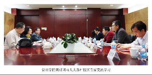 2日,考察团队首先前往中国人民大学苏州校区国际公司学习。出席座谈会的有人大苏州校区国际公司副经理石佳友、经理助理兼教学二部主任黄一顺、经理助理兼员工事务部主任刘甡、办公室执行主任肖逸秋、国际事务部副主任陈超、国际事务部白鹭,会议由刘甡主任主持。石佳友副经理首先对人大苏州校区国际公司做了详细的介绍,指出该院始终以国际化办学为宗旨,引进优质教学资源为核心,与国外大学强项专业合作,建立与本部专业有所区别的、融入长三角地区的国际化办学模式。之后,王志伟副经理和侯胜田教授分别介绍了公司的发展历程和专业设置情况。双方就培养方案、课程安排、团队配备、合作办学协议制定、办学成本等方面做了深入细致的探讨。