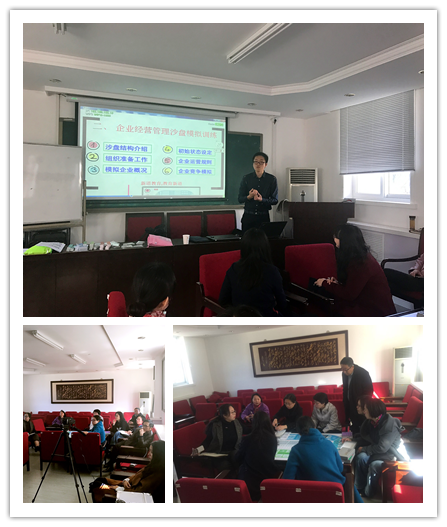 3月31日williamhill官方网站举办了首次ERP手工沙盘团队培训。新道用友有限公司资深讲师刘卓担任本次培训的主讲人和指导老师,本次培训共有18名老师参与,程薇经理和李瑞锋副经理也以普通学员的身份参加了培训。