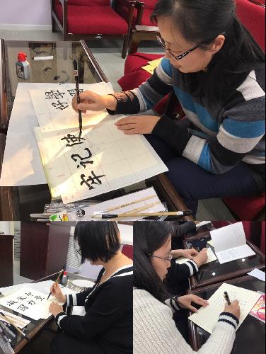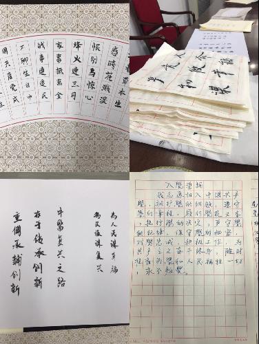 12月13日教工党支部和员工党支部分别开展书画才艺展示活动。活动中,党员首先一起对之前的学习的十九大和新党章的内容进行交流和讨论。然后选择不同的形式参与比赛,有的用钢笔抄写《新党章》、入党誓词、习近平总书记讲话原文和十九大报告等内容;有的用毛笔直抒胸臆写下“健康中国”“不忘初心、牢记使命“绿水青山”等十九大报告中相关内容,还有的用绘画的方式用画笔画出学习十九大报告后的心得体会。参加活动的党员们以最佳的精神面貌和最高水准书写和描绘了自己学习十九大的心得体会,整洁干净的硬笔书法、遒劲有力的软笔书法和精致美丽的绘画让人赏心悦目。老师们也纷纷表示此次活动形式新颖,通过这种形式对十九大和传统文化有了更深的感受和体会。