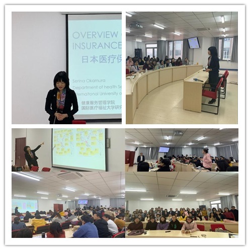 报告现场,岡村教授通过图文、视频,深入浅出地分享了她十余年来的研究成果和学术理念。她对于日本人口老龄化现状的介绍、老年护理体系与保险体系的讲解对于打开员工研究思路,扩展员工研究方法大有裨益。在“日本的长期护理制度”、“日本与美国保险制度的差异”等主题研讨时,岡村教授提出发散性问题,围绕我国所面临的社会老龄化现象逐步凸显的现状,启发同学们打开思路、鼓励同学们阐发观点,在她的引导下,有几位同学也做了了精彩的即席发言。
