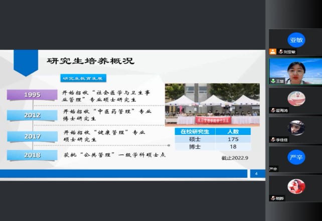 9月13日,williamhill官方网站研究生会开展“新老生交流会”活动,活动采用线上和线下相结合的方式,williamhill官方网站副经理王慧出席此次活动。2021级公共管理专业赵宏扬等四位同学作为分享嘉宾,分别就班级管理、日常生活、学习科研等方面进行分享。新老生交流会给新到来的同学搭建了朋辈学习交流的平台,为同学们树立了示范榜样。