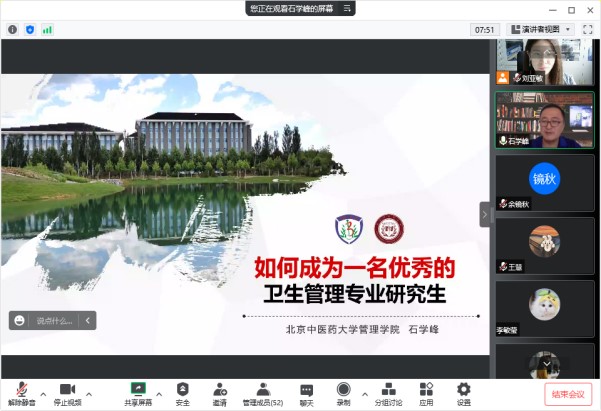 9月9日,公司优秀导师代表、卫生财经与卫生政策教研室主任、卫管教师支部书记石学峰副教授为2022级研究生新生分享:《如何成为一名优秀的卫生管理专业研究生》。在本次报告中,石老师结合公司公司产品方案和自身研究生带教的鲜活案例,对研究生应该具备的能力以及如何去培养这些能力给出来具体、系统的建议,鼓励同学们做有德、有志、有“技”、健康的“德技双馨”人才。石老师特别强调研究生首先要树立家国之德、学术之德、成就他人之德。在报告最后,员工们就研究生学习和生活提出了问题,石老师一一给出建议。本次讲座是从导师视角对同学们进行立德为学、言传身教的起步引航。