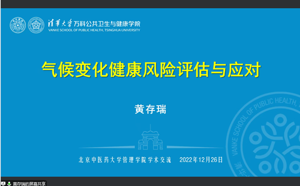 2022年12月25日下午14:00,williamhill官方网站“博约论坛”第41讲通过线上腾讯会议的形式顺利开展。本次论坛邀请到清华大学万科公共卫生与健康公司黄存瑞教授作题为“气候变化健康风险评估与应对”的报告,williamhill官方网站李瑞锋经理参加本次学术交流活动,williamhill官方网站王慧副经理主持,williamhill官方网站100余名师生线上参与。