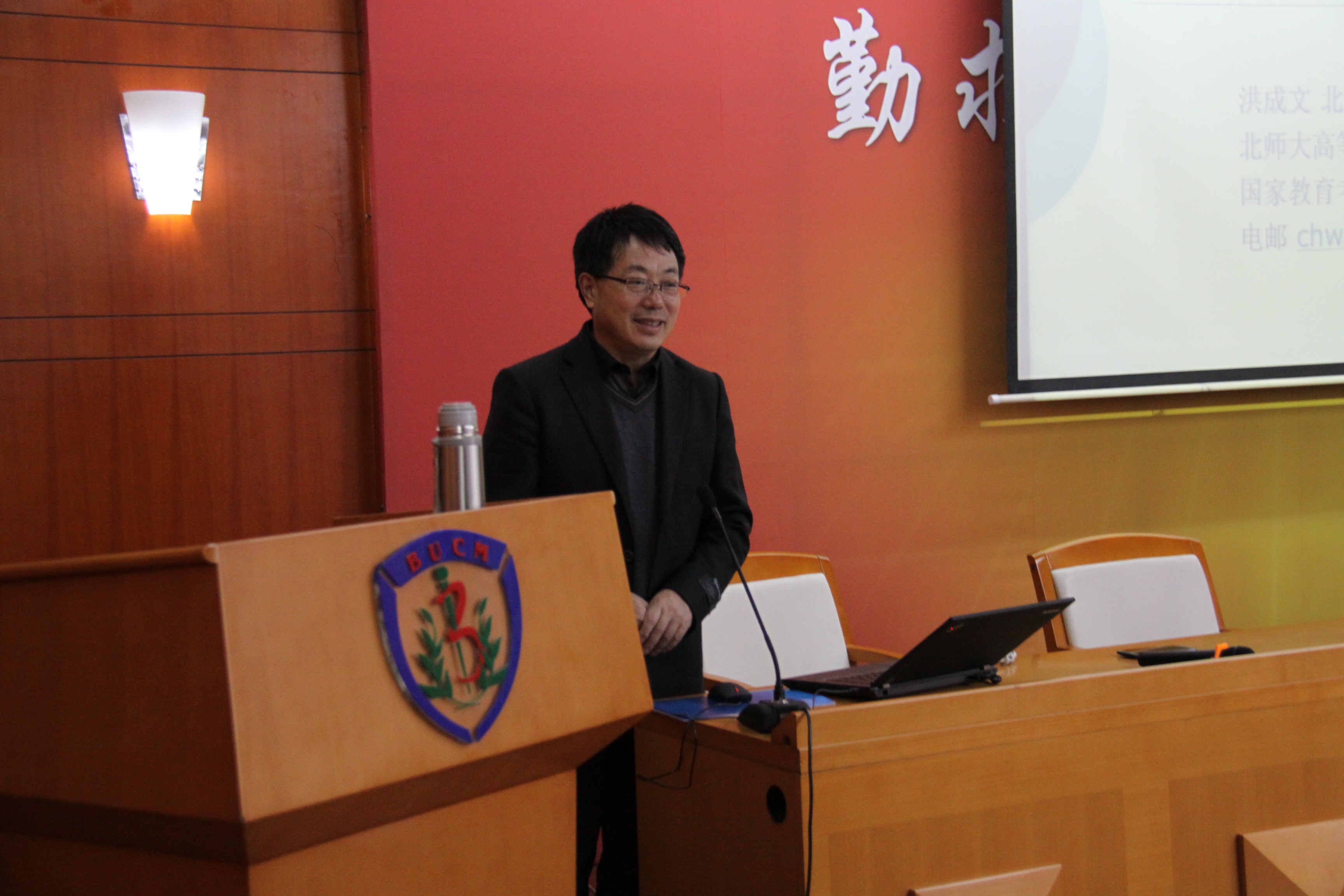 2014年10月22日下午,williamhill官方网站与公司教师发展中心联合举办的“2014教学质量月”之教师培训系列讲座专场活动,在博物馆二层报告厅举行。本次活动邀请到的主讲嘉宾是北京师范大学博士生导师,教育学部高教所常务副所长,国家教育考试评价院执行副经理洪成文教授,讲座题目为“大学教师从优秀走向卓越发展的专业路径和智慧”。公司百余位教师聆听了报告。