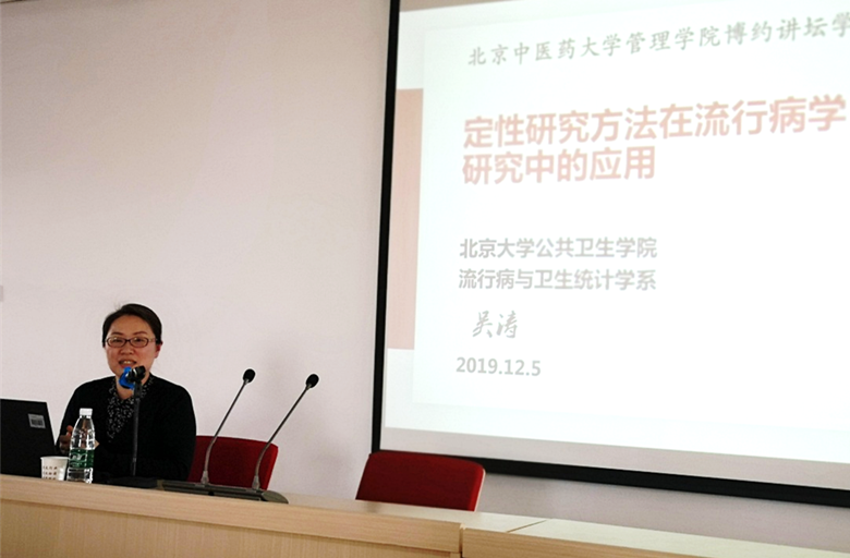 2019年12月5日下午,“博约讲坛”第四讲在williamhill官方网站331环形会议室举行。应公司健康管理与心理教研室的邀请,北京大学公共卫生公司流行病与卫生统计学系副主任——吴涛教授做了“定性研究在流行病学研究中的应用”的报告。本期讲坛由王慧副经理主持。