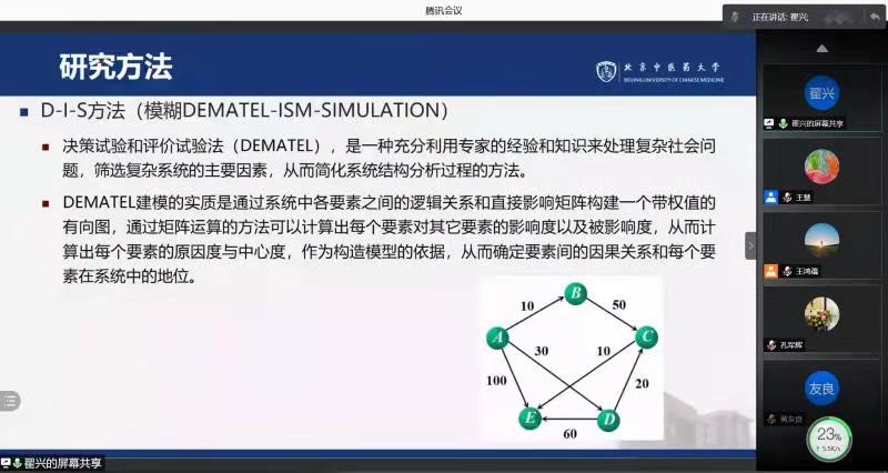 随后,翟兴老师以“基于信息生态理论的在线医疗健康平台信息服务影响因素研究”为题目,分享了个人近期的研究成果,从研究背景、研究方法、研究设计等角度全面阐述运用信息生态理论研究在线医疗健康平台信息服务影响因素的主要成果,研究关注通过多种方法的结合,提升研究结论的可靠性。